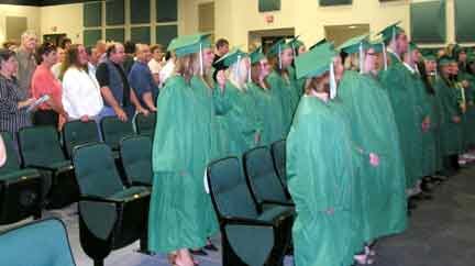 Meade County High School held its 94th commencement service June 6 under clear skies. For the first time, the graduates entered Hamilton Field from the new addition to Meade County High School, processing down the stairway as the MCHS band played “Pomp and Circumstance.