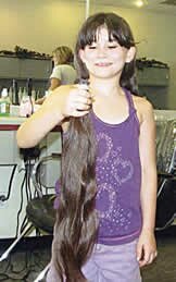 Today, Wednesday, July 14, 2010, I went to Fantastic Sam’s in Brandenburg and got my hair cut for the first time. I had 25 inches cut off and donated it to the Locks of Love Foundation. I think that it is a very good foundation. There are so many kids and adults who have lost their hair due to being sick and need more hair. I’m looking forward to whoever gets my dark hair and I hope they love it as much as I did. If you would like to donate some hair just like I did, go on down to Fantastic Sam’s and they will take care of you. It has to be at least seven inches cut in order to have it donated.