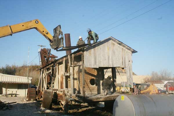 “History in the making” The Osgood steam shovel, which occupied a portion of gravel lot near the shop and administrative offices of Battletown’s Cemex Quarry, left Nov. 7, nroute to a new home – and a new life.